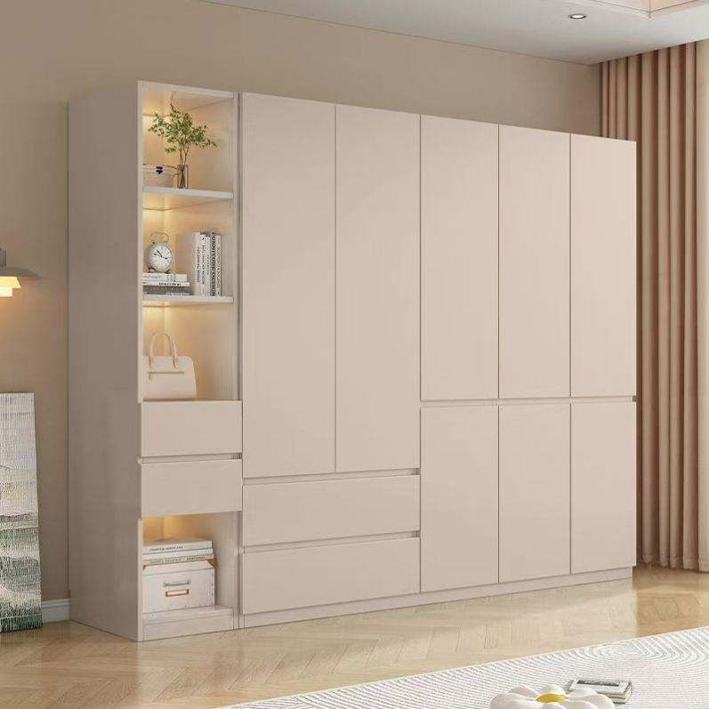 Cream Wind Sliding Door Wardrobe Home Bedroom Light Luxury Modern Simple Overall Sliding Door Wooden Wardrobe Storage.
