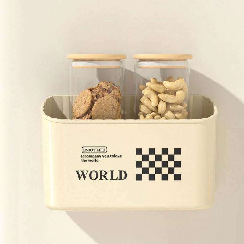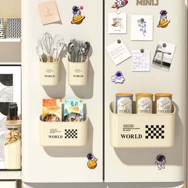 กล่องเก็บของในตู้เย็นติดผนังแม่เหล็กสไตล์ครีม | ตะกร้าจัดระเบียบในห้องครัวแบบไม่ต้องเจาะ