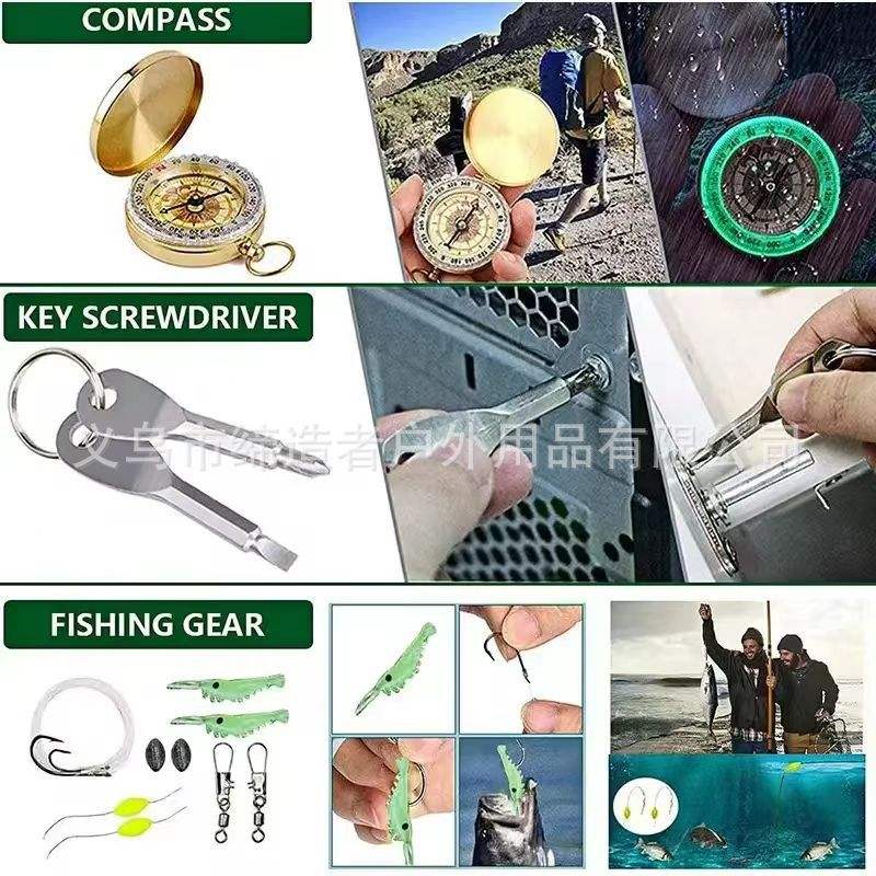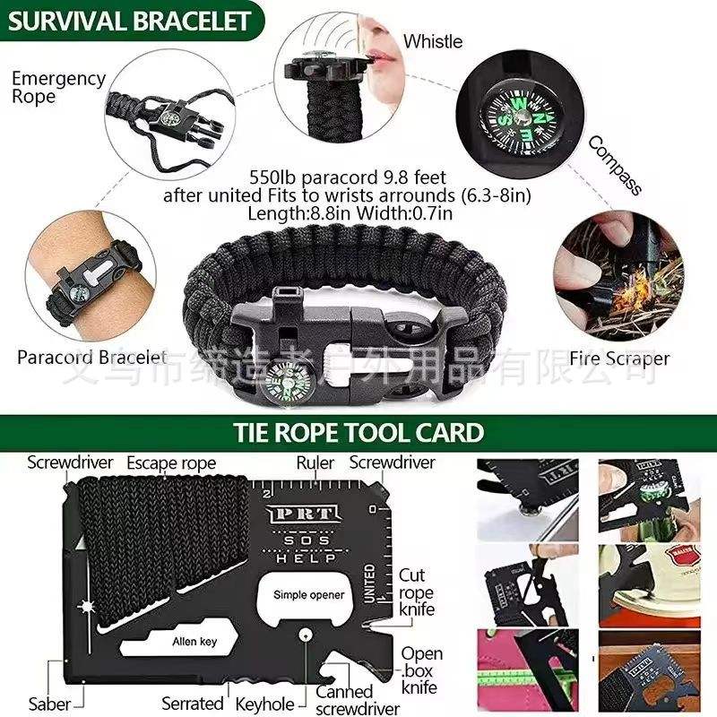 ชุดอุปกรณ์เอาตัวรอดกลางแจ้ง Creatar 30 in 1 พร้อมมีด เข็มทิศ ไฟฉาย สำหรับตั้งแคมป์ เดินป่า อุปกรณ์ฉุกเฉิน สีดำ