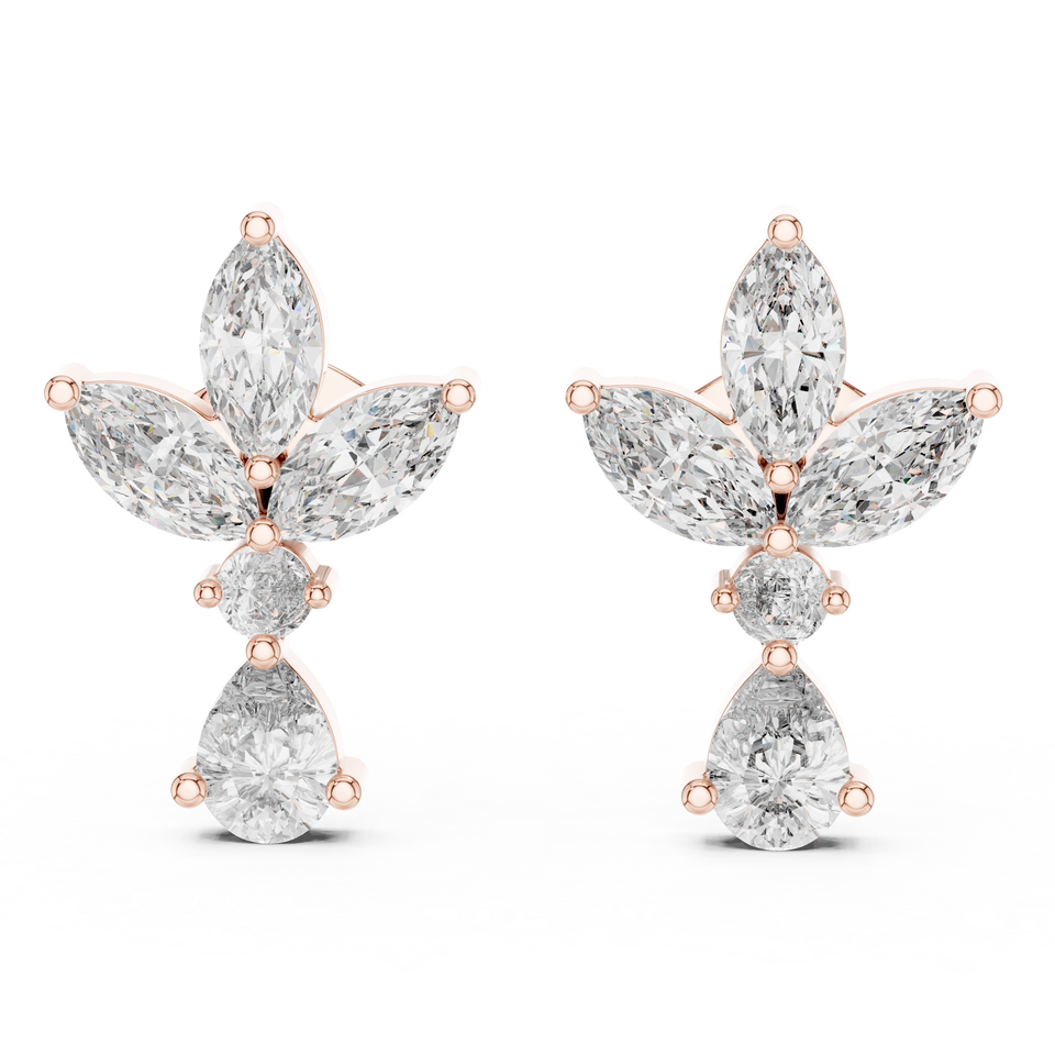 ทำด้วยมือ CVD ห้องปฏิบัติการทำด้วยมือ925ผู้หญิงเครื่องประดับเงินต่างหูเพชรกลุ่มดอกไม้รัศมี