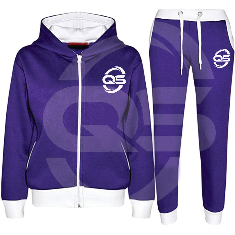 ชุดวอร์มผ้าฟลีซแบบยูนิเซ็กซ์พร้อมซิปและกางเกงจ็อกเกอร์เข้ารูป ออกแบบลายของคุณเอง กางเกงออกกำลังกายต้านเชื้อแบคทีเรีย