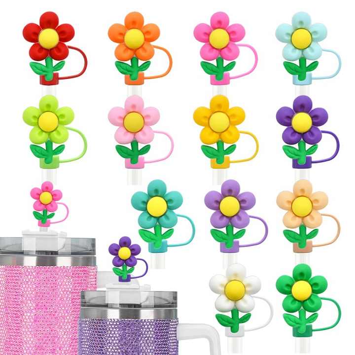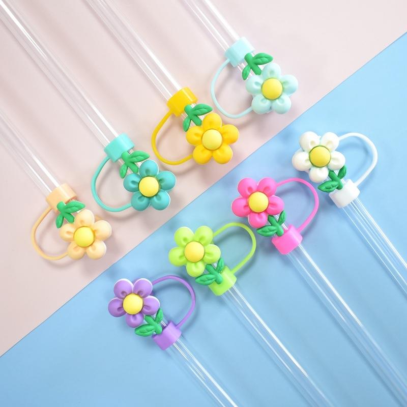 จุกปิดหลอดดูดน้ำแบบสร้างสรรค์ ขนาด 10 มม. สำหรับตกแต่ง DIY ใช้ซ้ำได้ ทำจากยางนิ่ม กึ่งสามมิติ ลายดอกไม้หลากสี สำหรับตกแต่งแก้วน้ำและอุปกรณ์บาร์