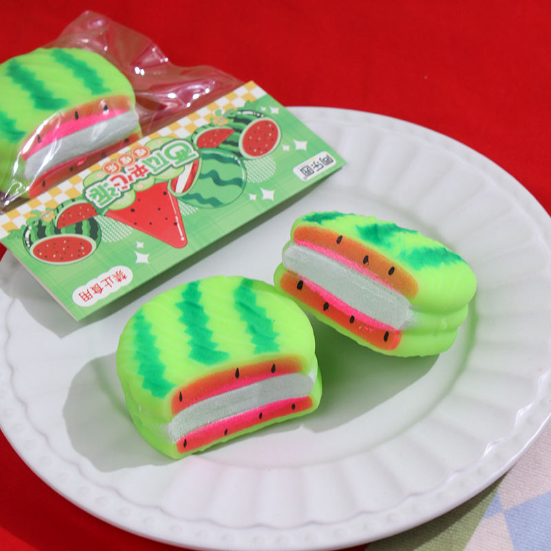 ของเล่นบีบรูปแตงโมขนาด 7 ซม. ของเล่นบีบคลายเครียด รูปทรงพาย ทำจาก TPR บรรจุแป้ง บรรเทาความเครียด ของขวัญสำหรับเด็กและผู้ใหญ่