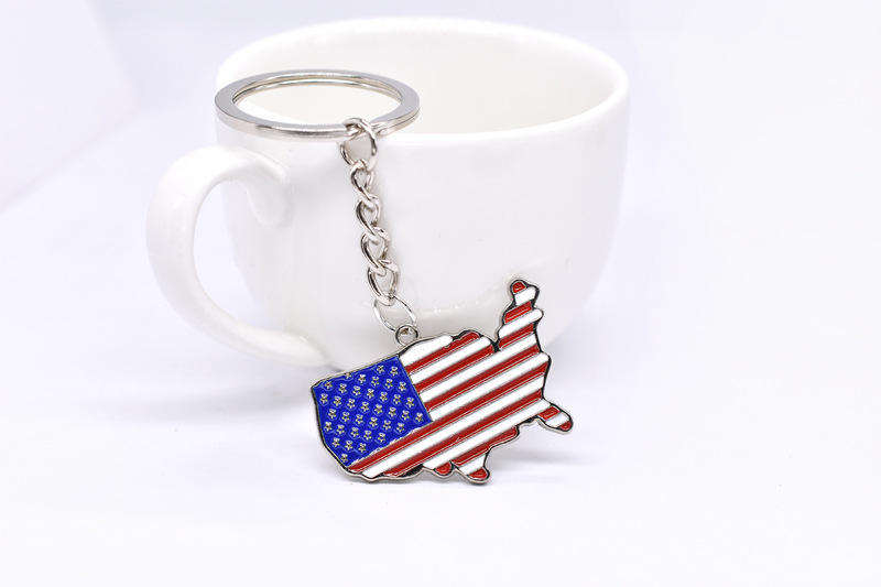 พวงกุญแจโลหะรูปธงชาติอเมริกัน ดีไซน์สร้างสรรค์ สำหรับผู้หญิงและเด็กผู้หญิง ตกแต่งงานปาร์ตี้วันประกาศอิสรภาพ รูปทรงแผนที่ ทำจากโลหะผสม