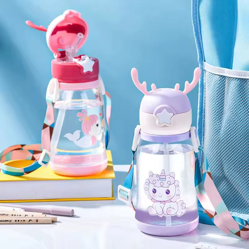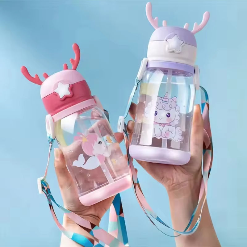 แก้วน้ำเด็กแบบมีหลอดดูดลายการ์ตูนเขากวาง วัสดุ PS เป็นมิตรกับสิ่งแวดล้อม พกพาสะดวก ป้องกันการรั่วซึม เหมาะสำหรับกลับไปโรงเรียนและกิจกรรมกลางแจ้ง