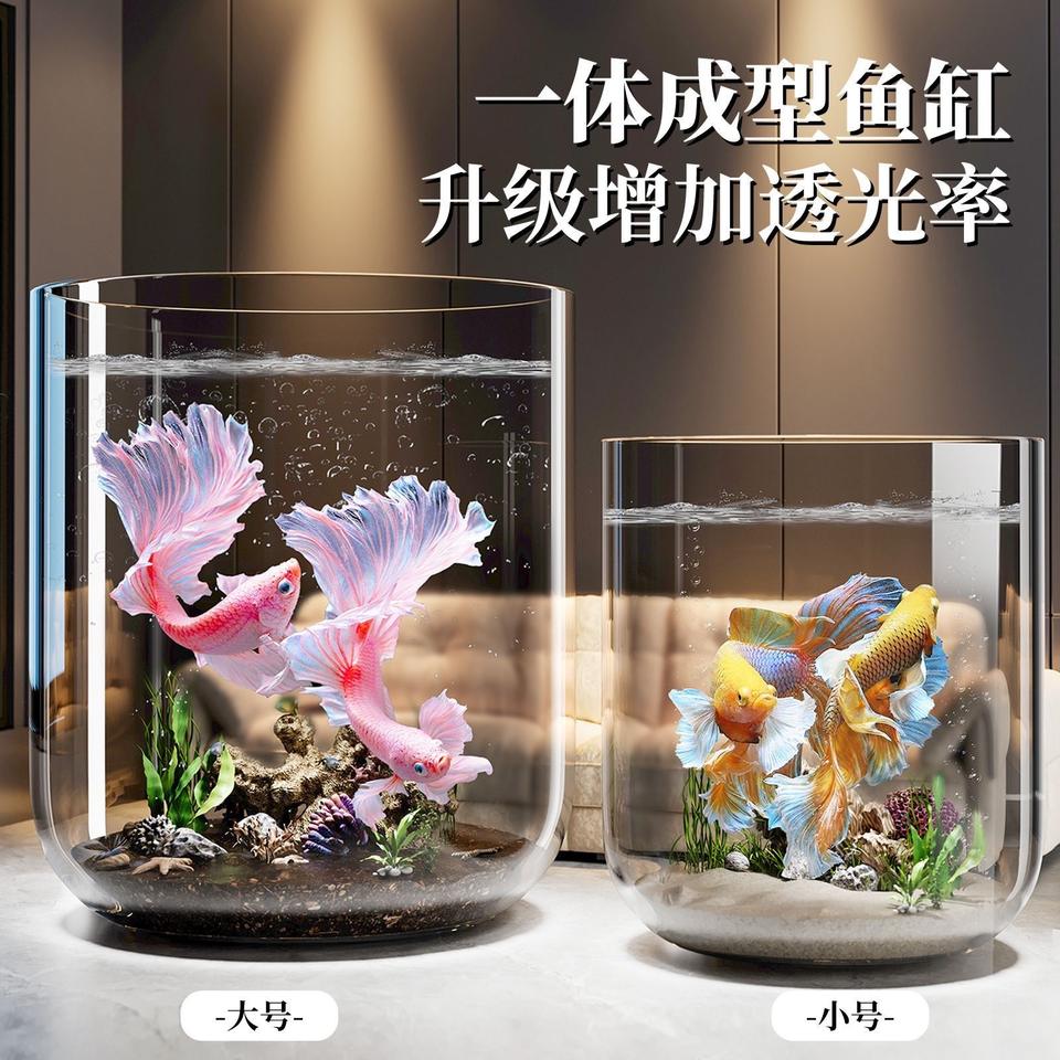 พิพิธภัณฑ์สัตว์น้ำที่สร้างสรรค์แจกันตั้งโต๊ะขนาดเล็กขนาดกลางตู้ปลาแก้วใสสูงปลาทอง