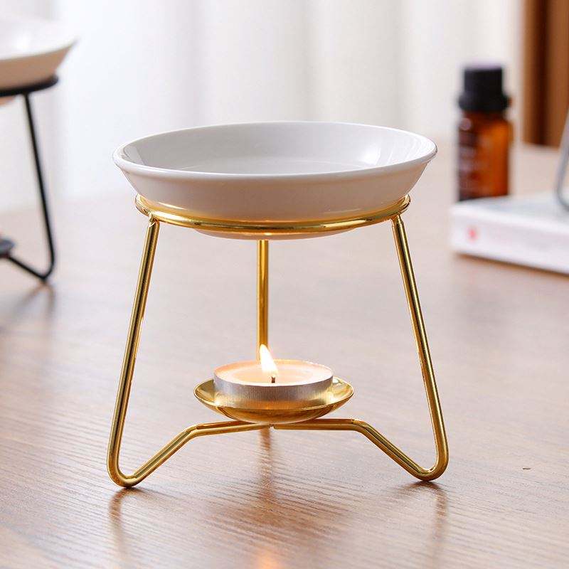 เตาน้ำมันหอมระเหยเหล็กสีทองเตาเทียนหอมระเหยสุดสร้างสรรค์