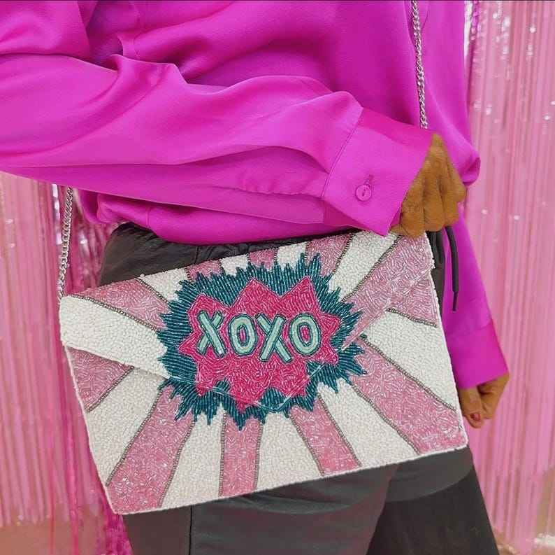 กระเป๋าคลัทช์ทรงสี่เหลี่ยมผืนผ้าประดับลูกปัดทำมือจากผ้าฝ้ายผสม สำหรับผู้หญิงและเด็กผู้หญิง ดีไซน์ทันสมัย