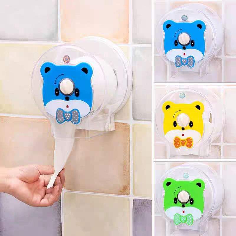 ที่ใส่กระดาษชำระการ์ตูนสร้างสรรค์ พลาสติกทรงกลม พร้อมถ้วยดูด ไม่ต้องเจาะ มีสีฟ้า เหลือง เขียวให้เลือก