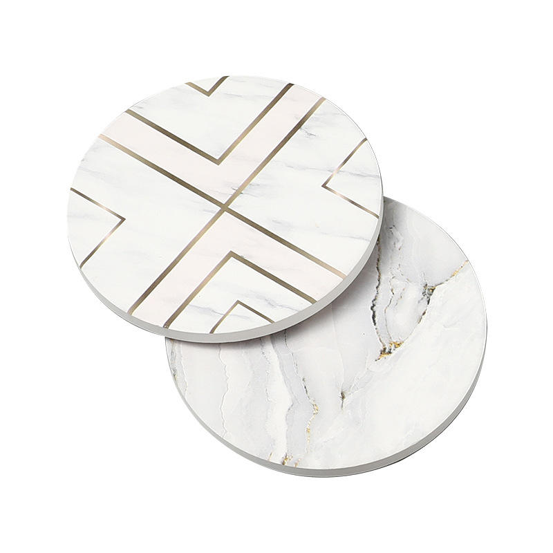 แผ่นรองแก้วเซรามิกทรงกลม สีขาว ดำ น้ำเงิน เขียว ชมพู เทา ซึมซับได้ดี กันลื่น แห้งเร็ว ผลิตจากซูโจว