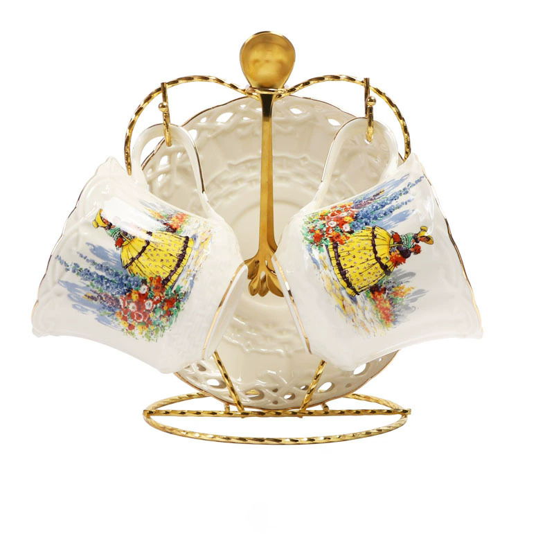 ชุดกาน้ำชาเซรามิกขอบทองแบบฝรั่งเศสสุดสร้างสรรค์จานรองถ้วยน้ำชายามบ่ายแบบเรียบง่าย
