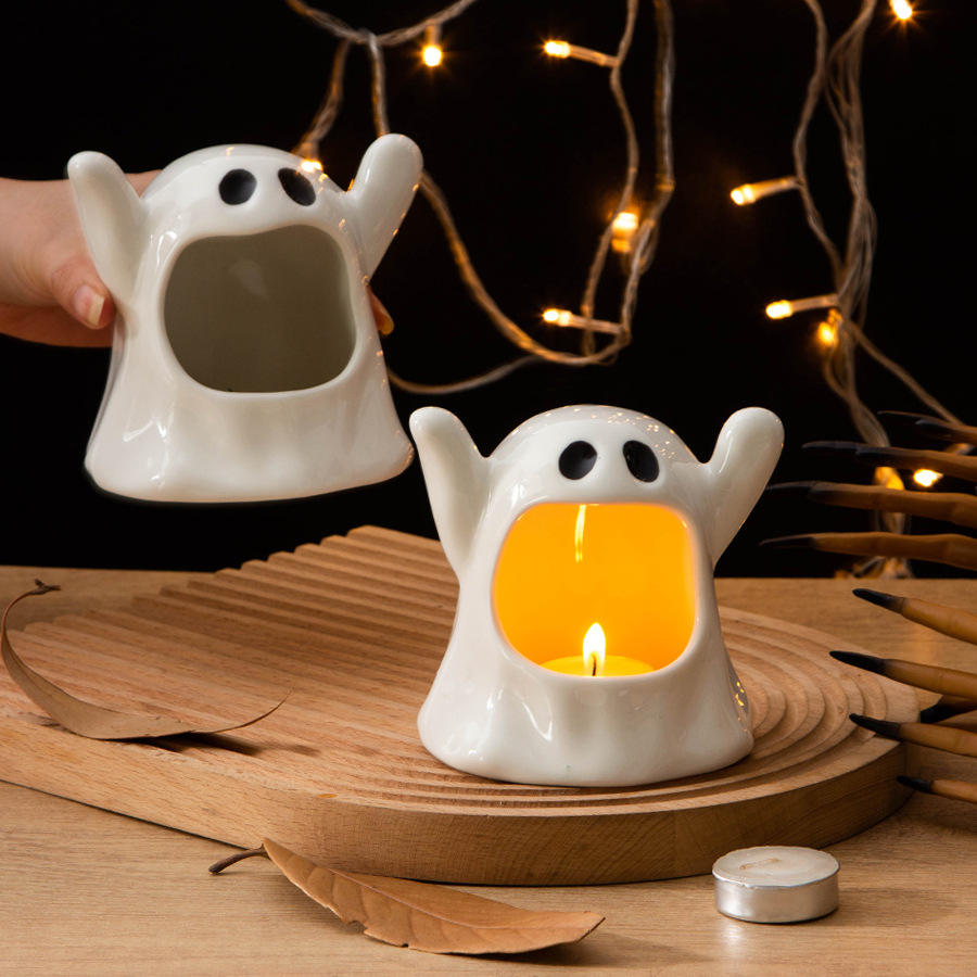 ที่ใส่เทียนเซรามิครูปผีพร้อมเอฟเฟกต์ควัน สำหรับตกแต่งบ้านในวันฮาโลวีน เป็นของขวัญที่เป็นมิตรกับสิ่งแวดล้อม