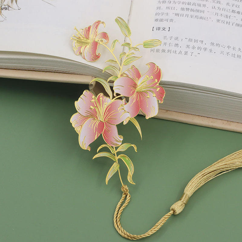 ที่คั่นหนังสือสไตล์จีนสุดสร้างสรรค์ที่คั่นหนังสือทำจากโลหะมีพู่ประดับที่คั่นดอกบัว