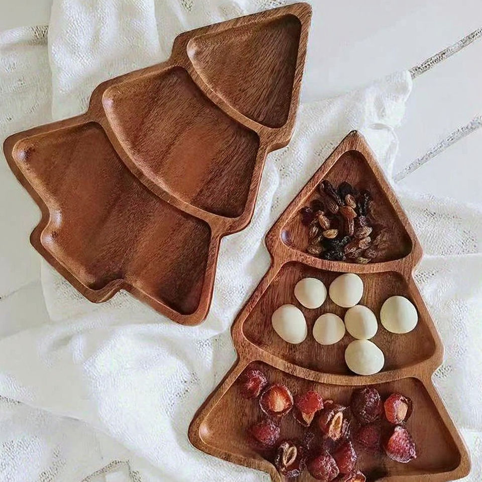 จานไม้ขัดแบบใช้แล้วทิ้งสำหรับตกแต่งบ้านจานของว่างรูปต้นไม้สำหรับเทศกาลคริสต์มาสและปีใหม่สุดสร้างสรรค์