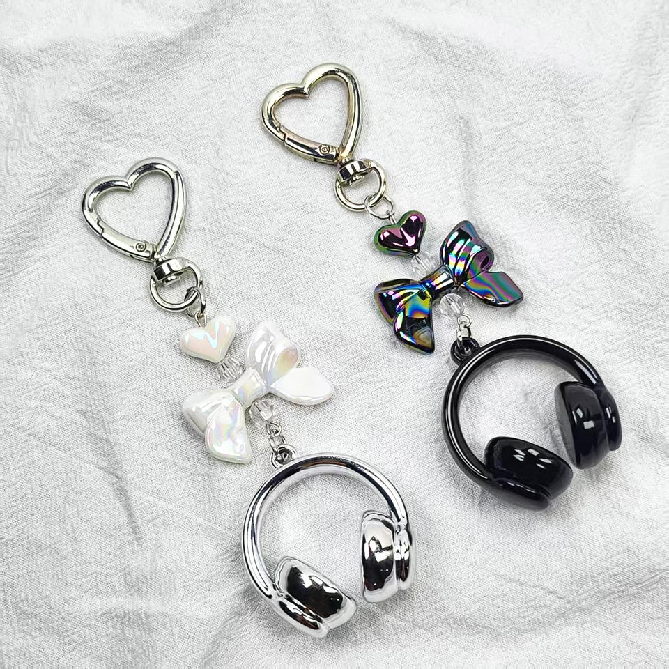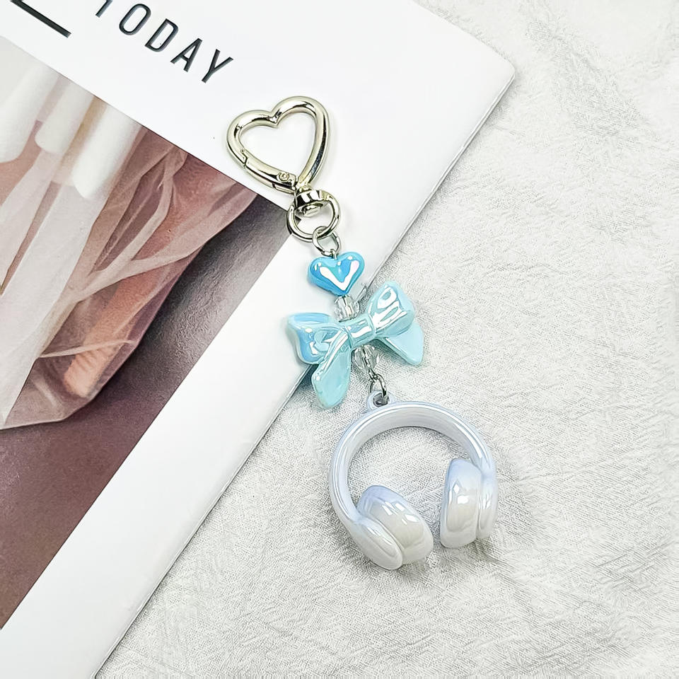 หูฟังเพลง3D สุดเท่แบบสร้างสรรค์พวงกุญแจจี้ห้อยโทรศัพท์มือถือทำจากยางทนทานสำหรับนักเรียนสำหรับกระเป๋าเป้สะพายหลังแบบแขวน