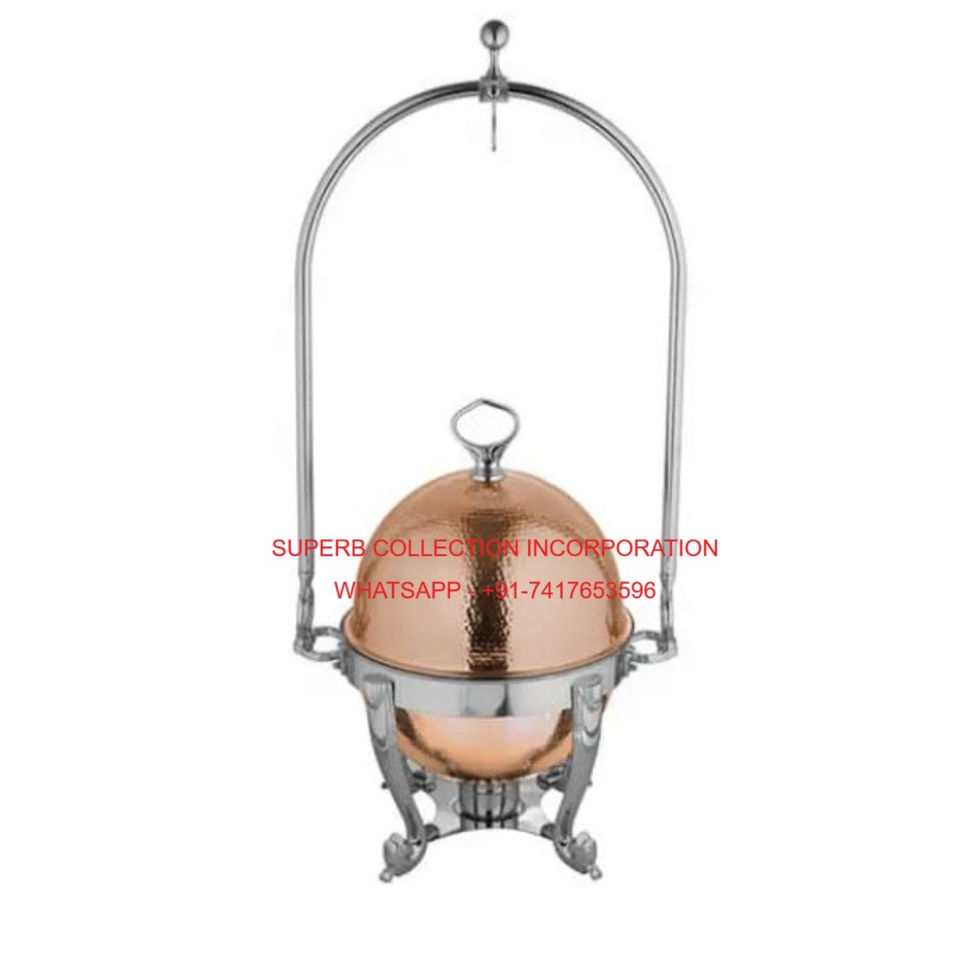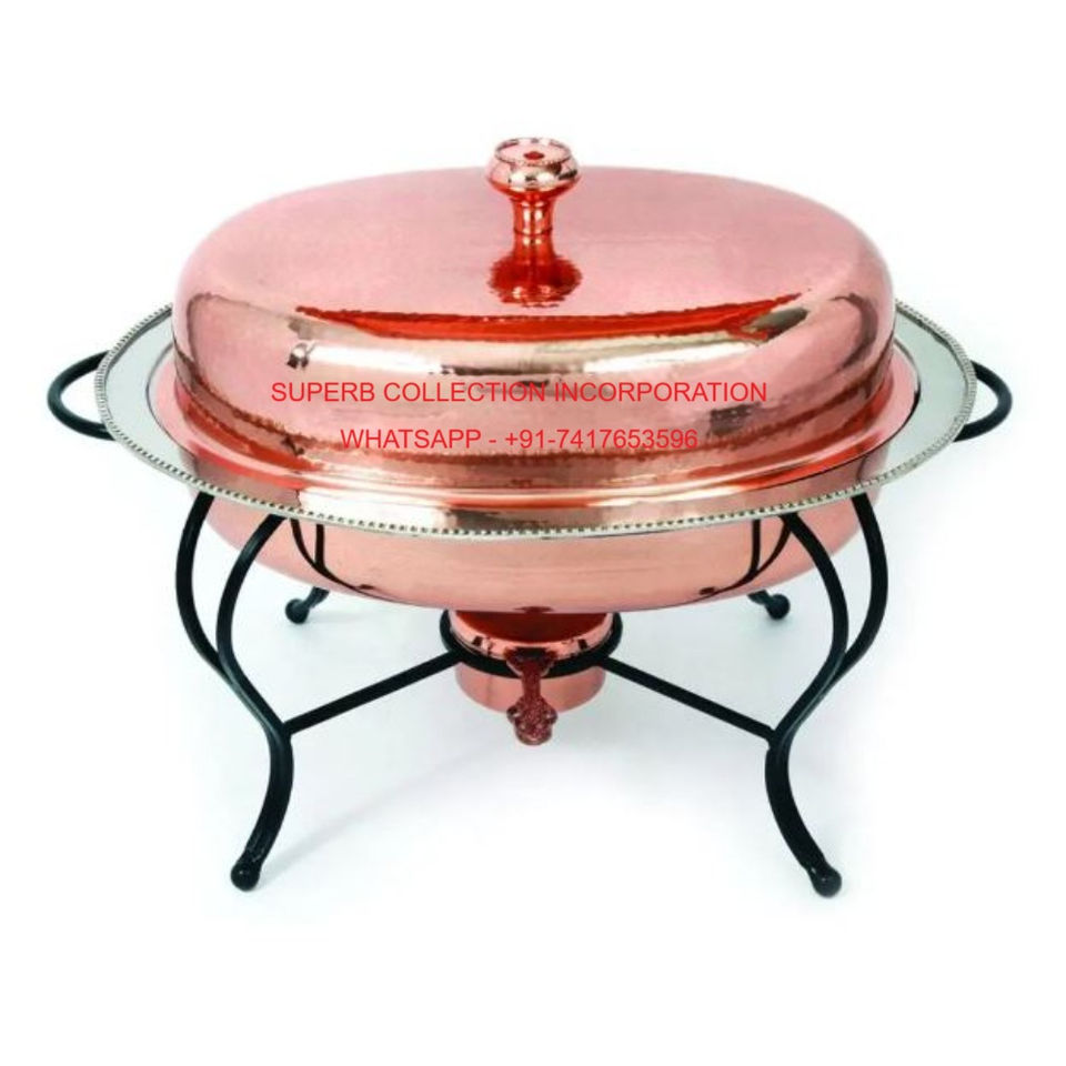 จานชุบทองแดงพร้อมกระทะสแตนเลสที่ทำจากเหล็กสุดสร้างสรรค์เหมาะสำหรับบุฟเฟ่ต์และงานจัดเลี้ยง