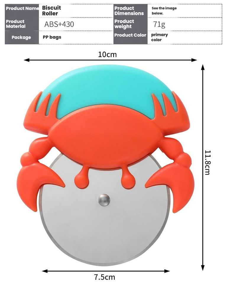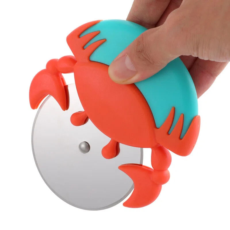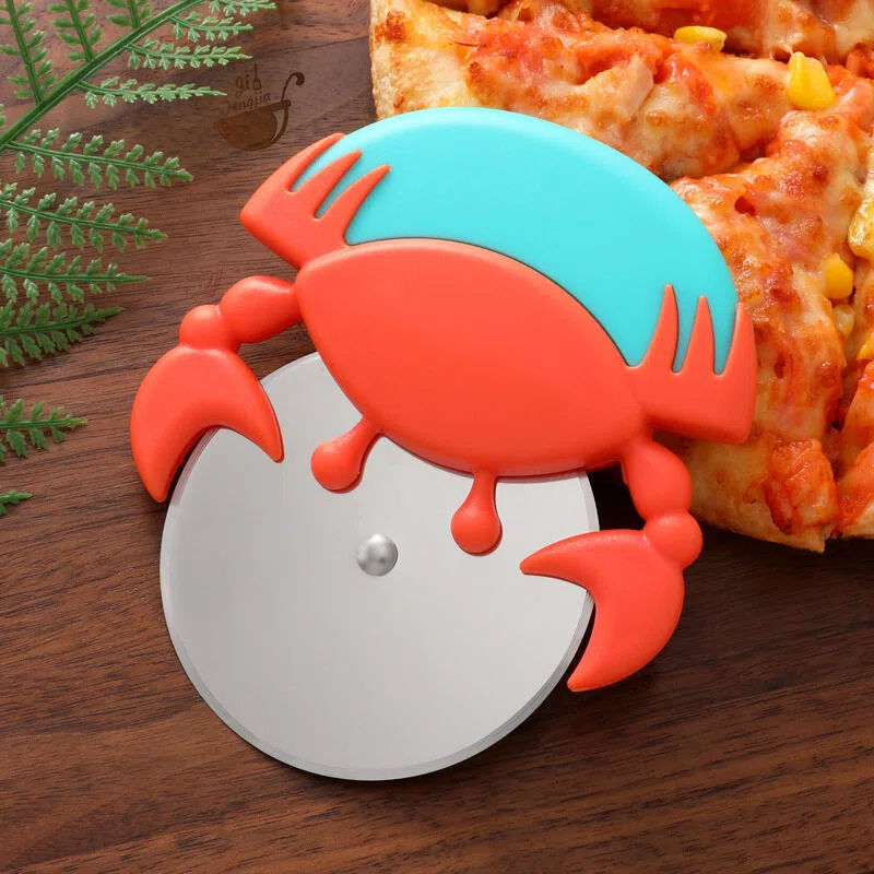 มีดตัดพิซซ่ารูปปูสุดสร้างสรรค์สำหรับใช้ในบ้าน มีดตัดพิซซ่าแบบลูกกลิ้งสแตนเลสทรงกลม ที่ตัดเค้ก มีดตัดพิซซ่า