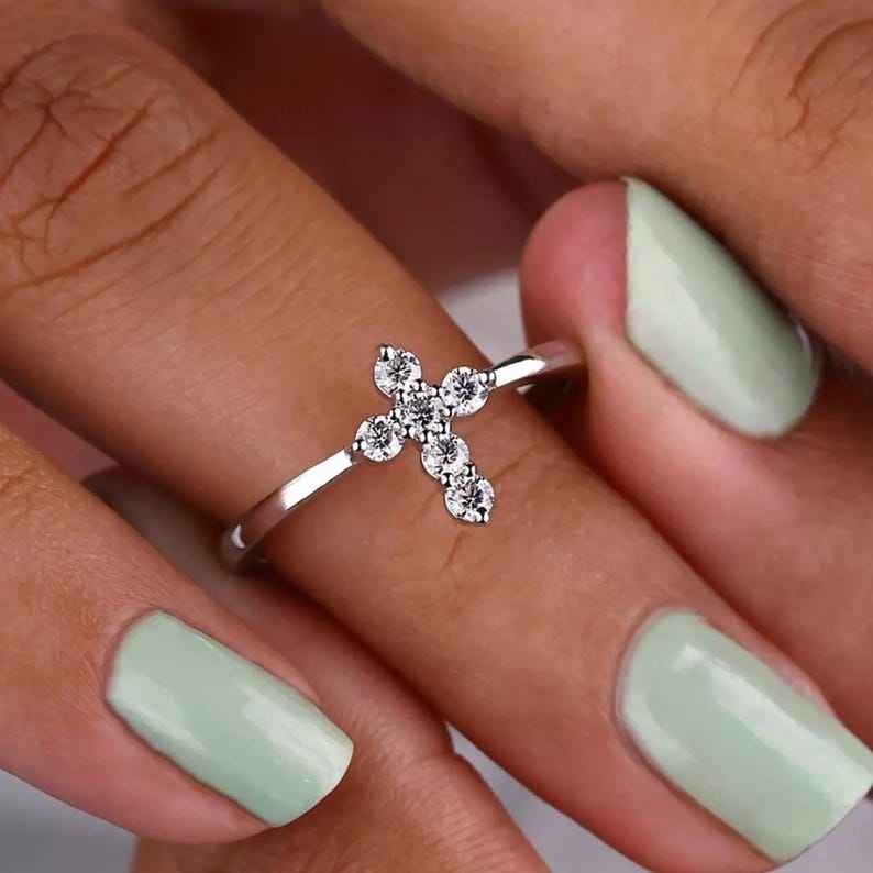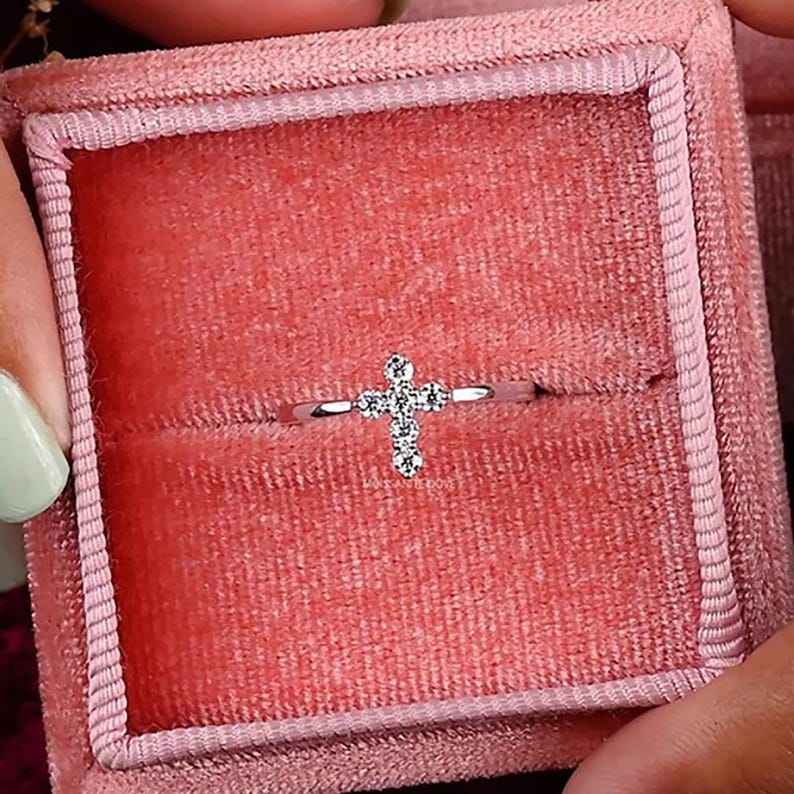 แหวนรูปทรงกากบาทประดับมอสซาไนต์ทรงกลม งานฝีมือสร้างสรรค์ สำหรับผู้หญิง เงินแท้ 925 สไตล์ศาสนา ของขวัญสำหรับคนรัก