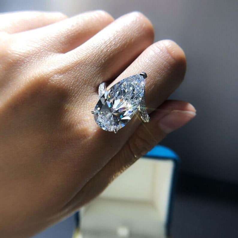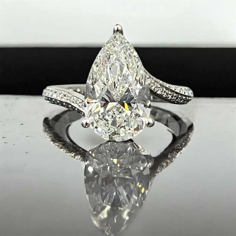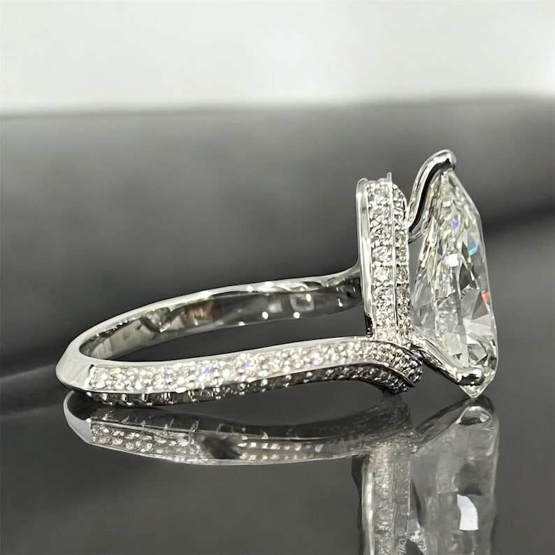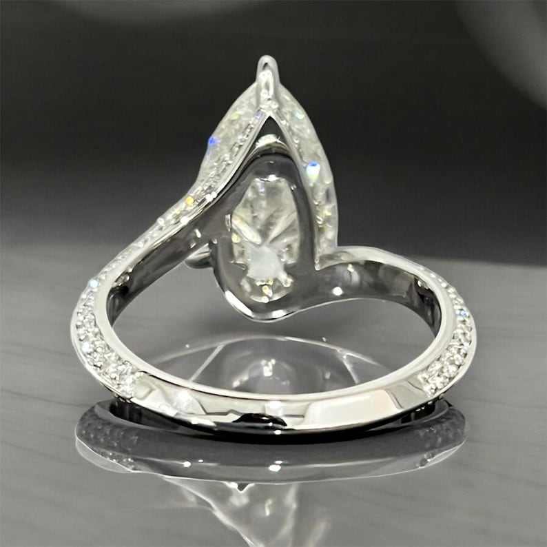 แหวนมอสซาไนต์ทรงลูกแพร์ดีไซน์หรูหราประดับเพชรแบบซ่อน สำหรับผู้หญิง เงินแท้ 925 สไตล์คลาสสิก แหวนหมั้น ของขวัญสำหรับคนรัก