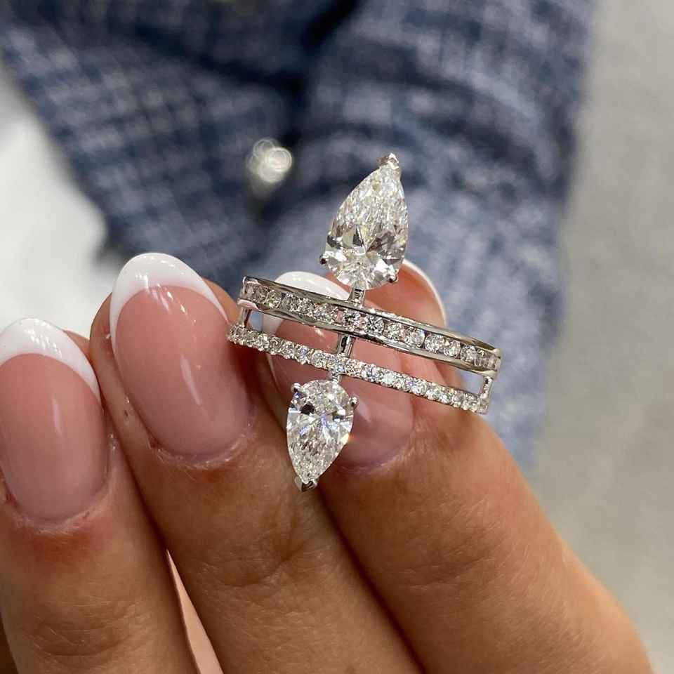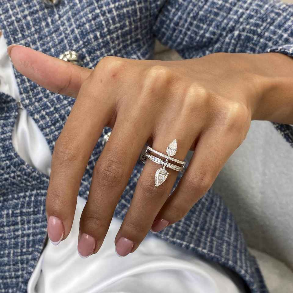 แหวนแถวคู่ประดับเพชรทรงลูกแพร์