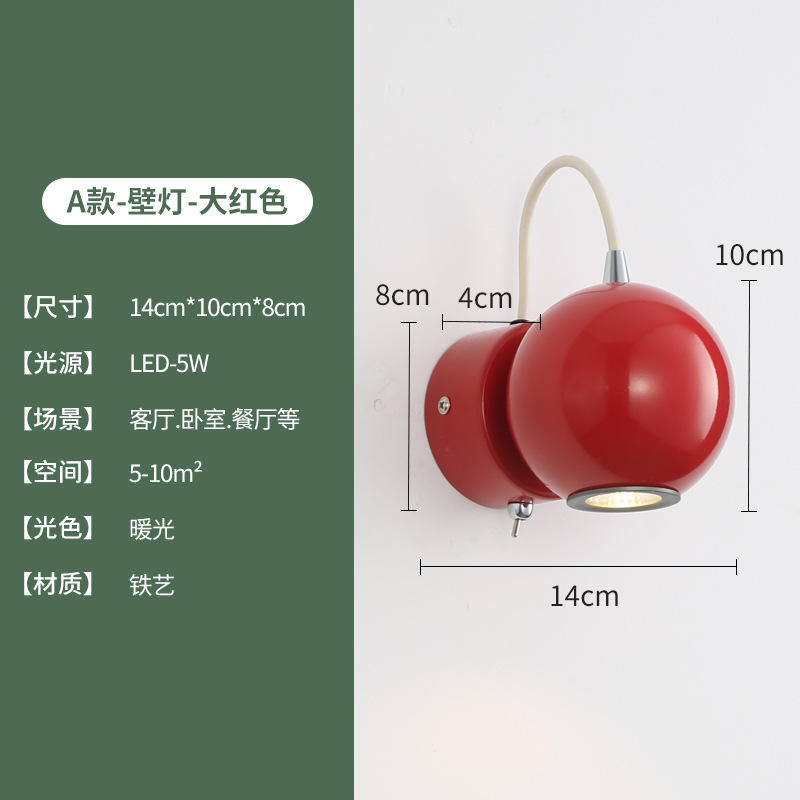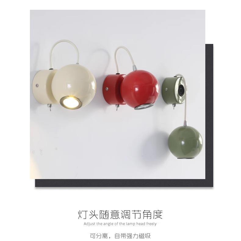 โคมไฟติดผนังทรงกลมแม่เหล็ก - สีแดง