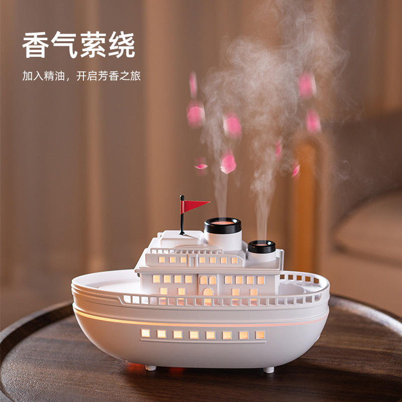 เครื่องเพิ่มความชื้นในอากาศรูปเรือสำราญแบบสร้างสรรค์ พร้อมไฟหลากสีสัน ใช้พอร์ต USB สำหรับใช้ในบ้าน