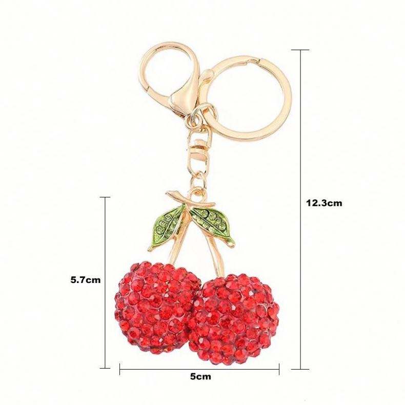 พวงกุญแจโลหะรูปผลไม้น่ารักประดับเพชรพลอยรูปเชอร์รี่ กันน้ำ ทนทาน ของขวัญวันเกิด ของที่ระลึก