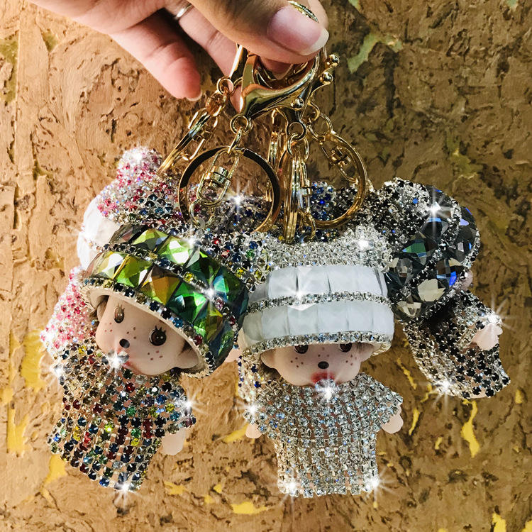พวงกุญแจรถยนต์รูปการ์ตูนน่ารัก สไตล์มันชกี้ ประดับเพชร สำหรับผู้หญิง คู่รัก ใช้แขวนกระเป๋า ขายส่ง