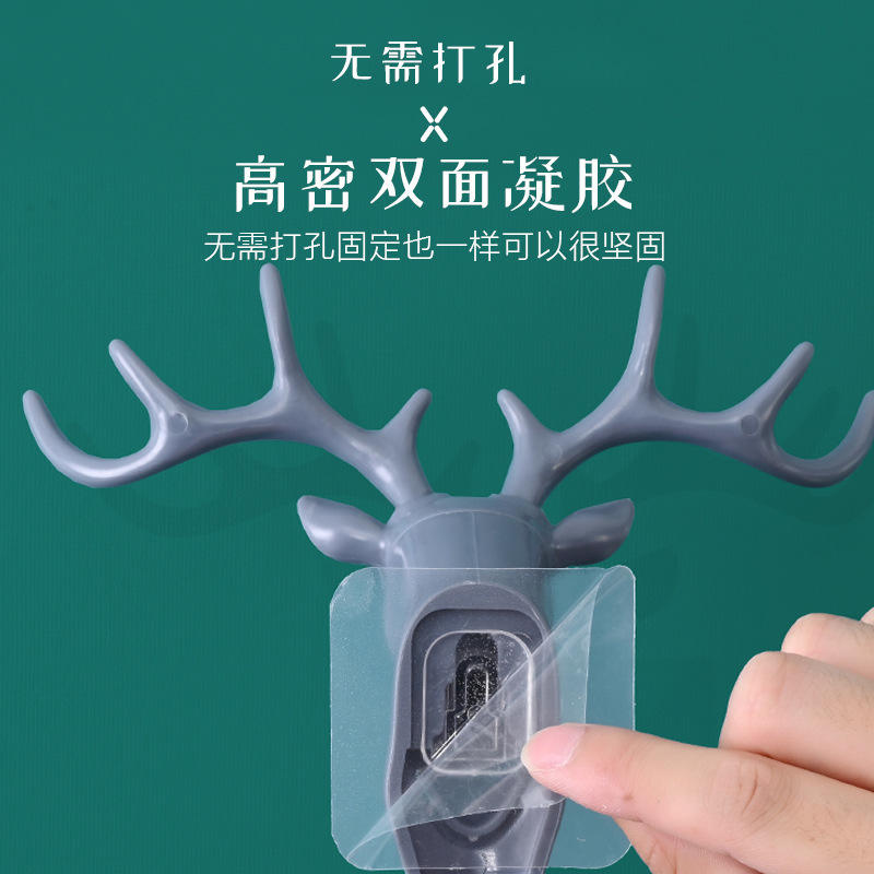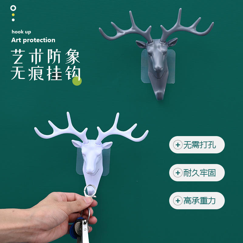ตะขอแขวนผนังรูปหัวกวางแบบติดกาว ที่แขวนกุญแจ สไตล์อเมริกัน วัสดุ PP รุ่น QX006 คอลเลคชั่นฤดูใบไม้ผลิ 2024