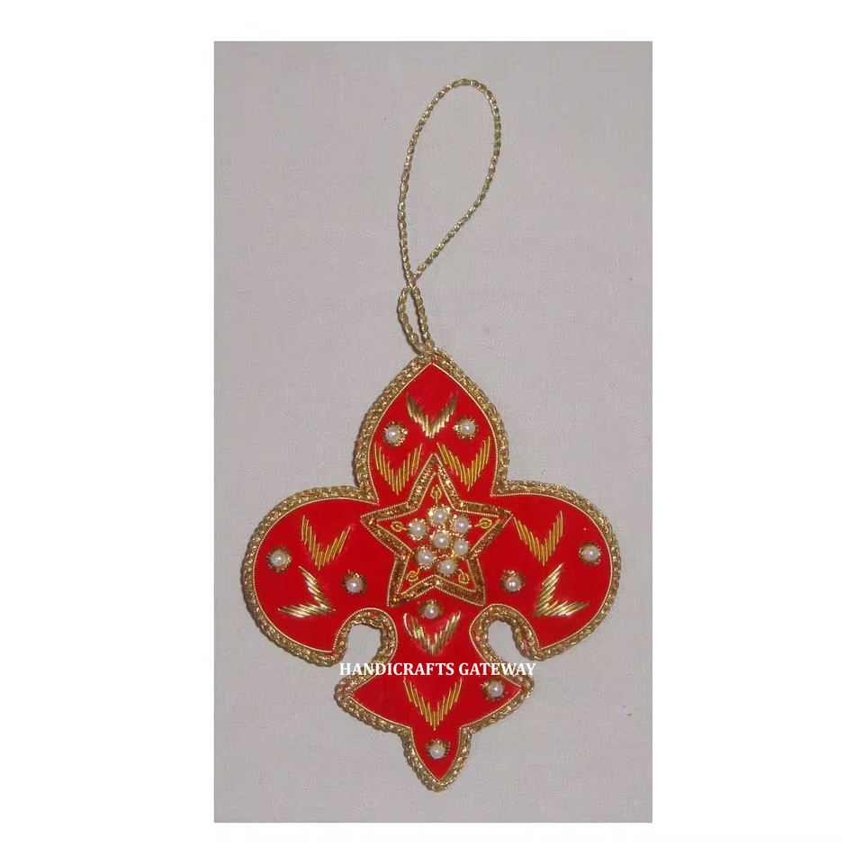 Creative Design And High Quality Golden Zari Embroidery With Beaded Work Red Color Fabric Christmas Hanging Decorative Ornament