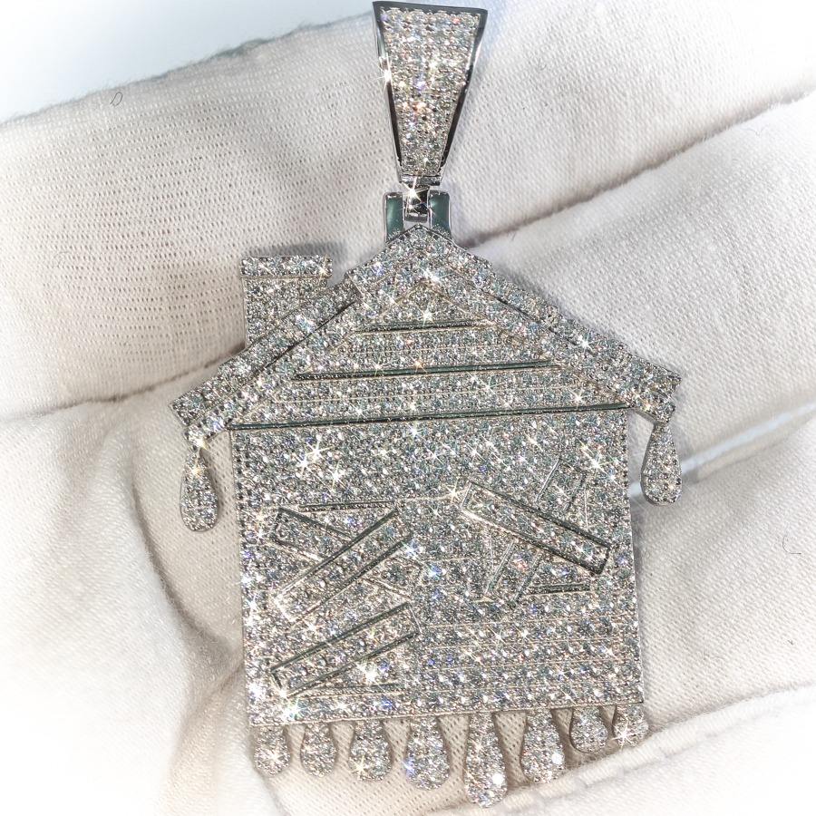 จี้เพชรโมอิสซาไนต์คุณภาพสูง ดีไซน์สร้างสรรค์ สไตล์ฮิปฮอป เงินแท้ประดับเพชรโมอิสซาไนต์ VVS ระยิบระยับ แบบ Trap House