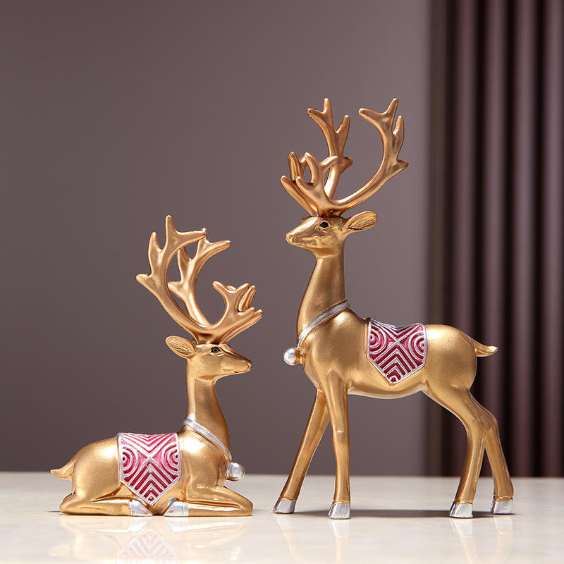 งานประติมากรรมเรซิ่นอีพ็อกซี่รูปกวางคู่ สไตล์ศิลปะพื้นบ้าน ตกแต่งตู้วางทีวี ห้องนั่งเล่น ทางเข้าบ้าน รับสั่งทำ ขายส่ง