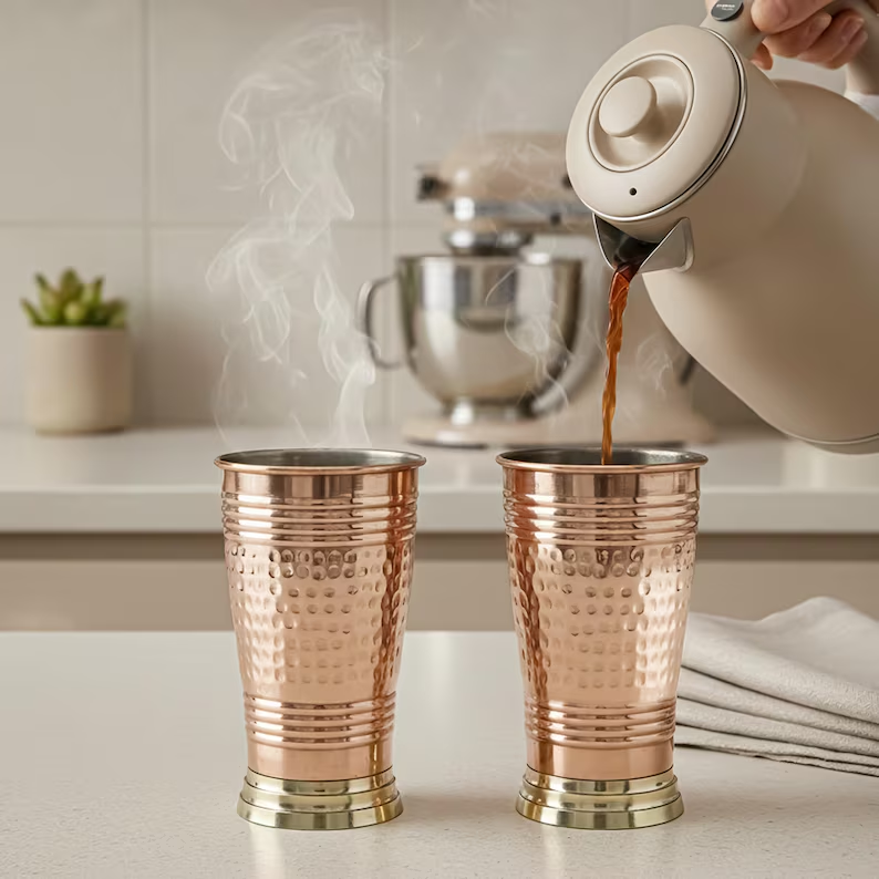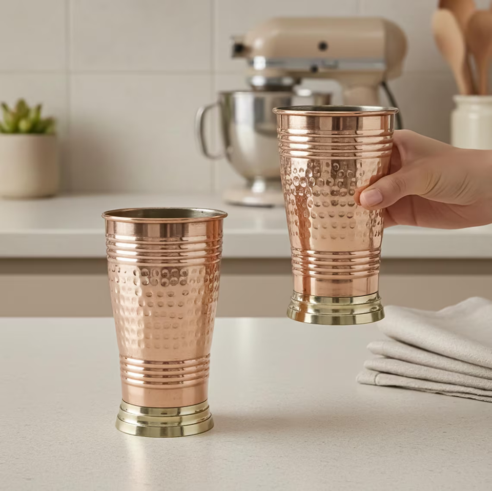 แก้วทองแดงลายสลักสร้างสรรค์ พร้อมหินประดับ ผิวกระจกเงาขัดมัน รุ่นใหม่ล่าสุด