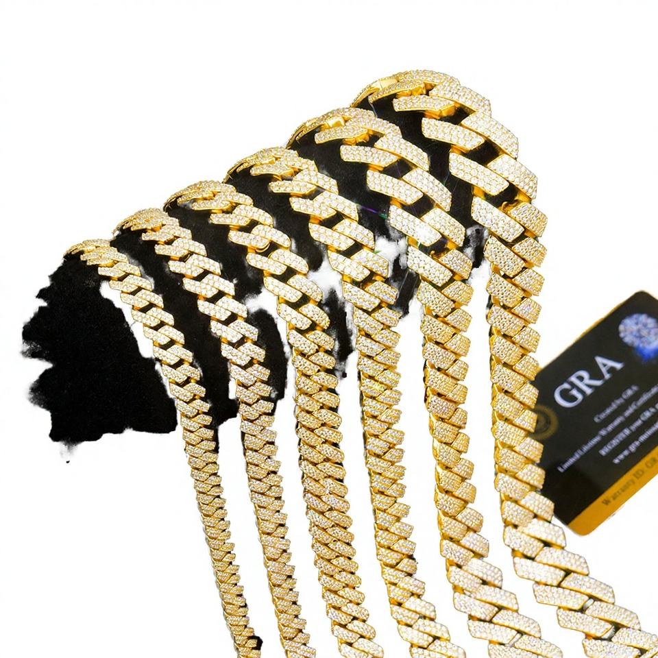 สร้อยคอผู้ชายสไตล์ยุโรปอเมริกันสุดสร้างสรรค์ ขนาด 10 มม. เครื่องประดับชั้นดี 18-24 นิ้ว สไตล์พังก์ คิวบา ประดับเพชรโมอิสซาไนต์เจียระไนแบบบริลเลียนท์ ได้รับการรับรองจาก GRA