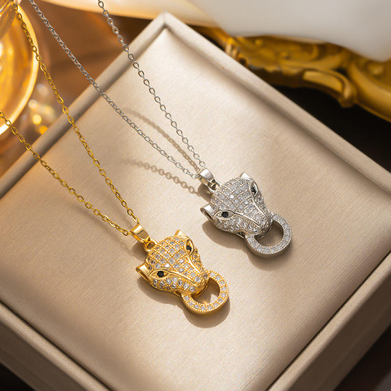 สร้อยคอแฟชั่นสุดสร้างสรรค์จี้รูปเสือดาวเซอร์คอนชุบโรเดียมสำหรับผู้ชายผู้หญิงเครื่องประดับรูปร่างและตัวเลข