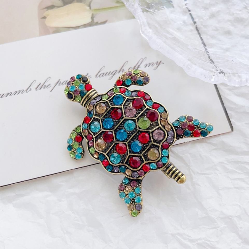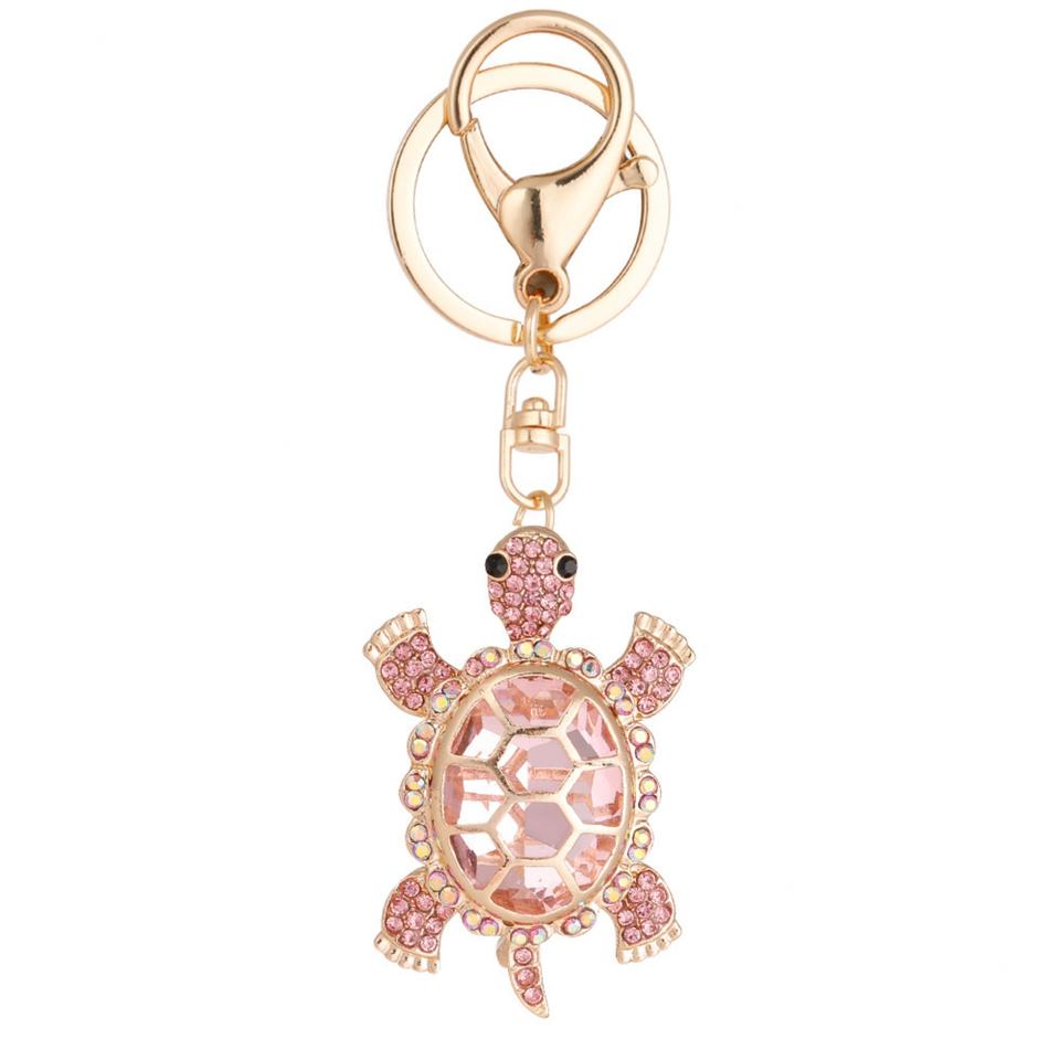 พวงกุญแจรูปเต่าโลหะสีทองแฟชั่นสุดสร้างสรรค์ ประดับคริสตัลหลากสีสันสวยงาม