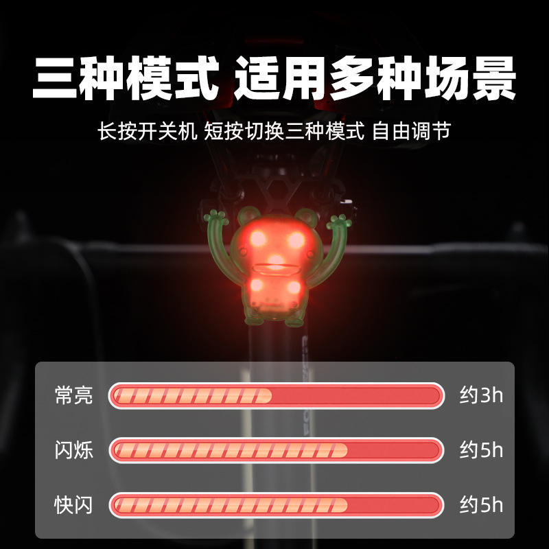 Creative Frog Bicycle Light Ip6 Water Resistant Led Tail Light For Electric Bike Riding Gear 4 Modes ABS Shell 21g