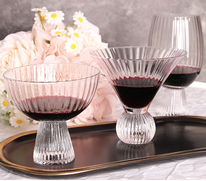 ชุดถ้วยแก้วสุดสร้างสรรค์พร้อมอุปกรณ์สำหรับดื่มลายทางสำหรับใช้ในบ้านถ้วยแก้วถ้วยแก้วก้านใหญ่แก้วคริสตัล