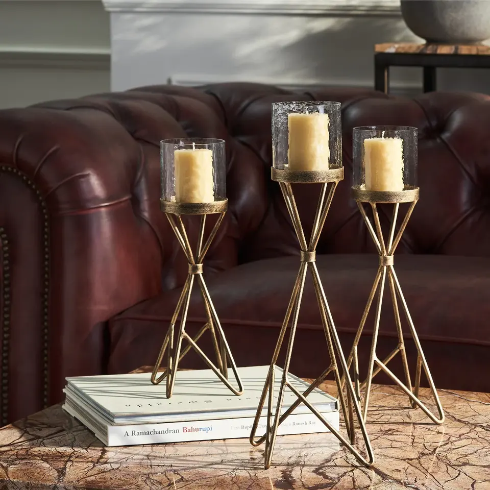 ชุดเชิงเทียนโลหะสีทองสำหรับตกแต่งโต๊ะ3ชิ้น