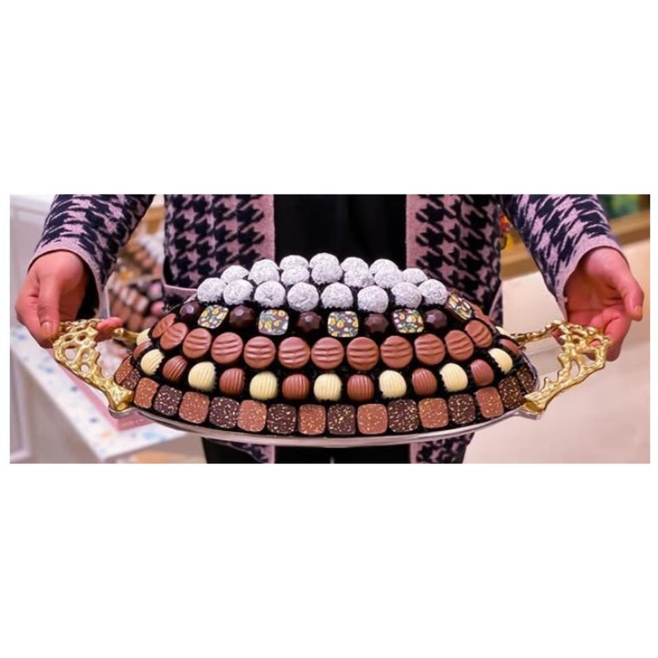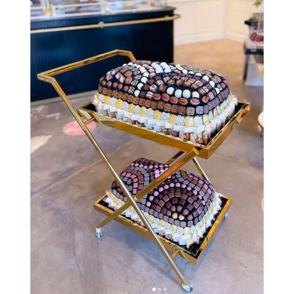 ถาดเสิร์ฟช็อคโกแลตโลหะสีทองสุดสร้างสรรค์เครื่องใช้สำหรับโรงแรมทำมือสำหรับวางโชว์ขนมหวานสำหรับร้านอาหารและโรงแรม