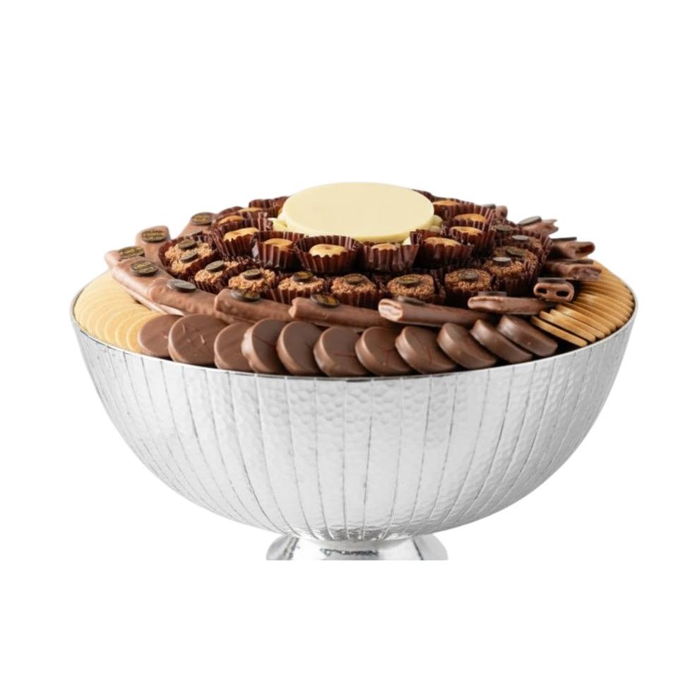 ชามเสิร์ฟช็อกโกแลตทรงกลมโลหะสีทองสวยงาม เป็นมิตรกับสิ่งแวดล้อม เหมาะสำหรับโรงแรม บ้าน ร้านอาหาร และทุกงานอีเว้นท์