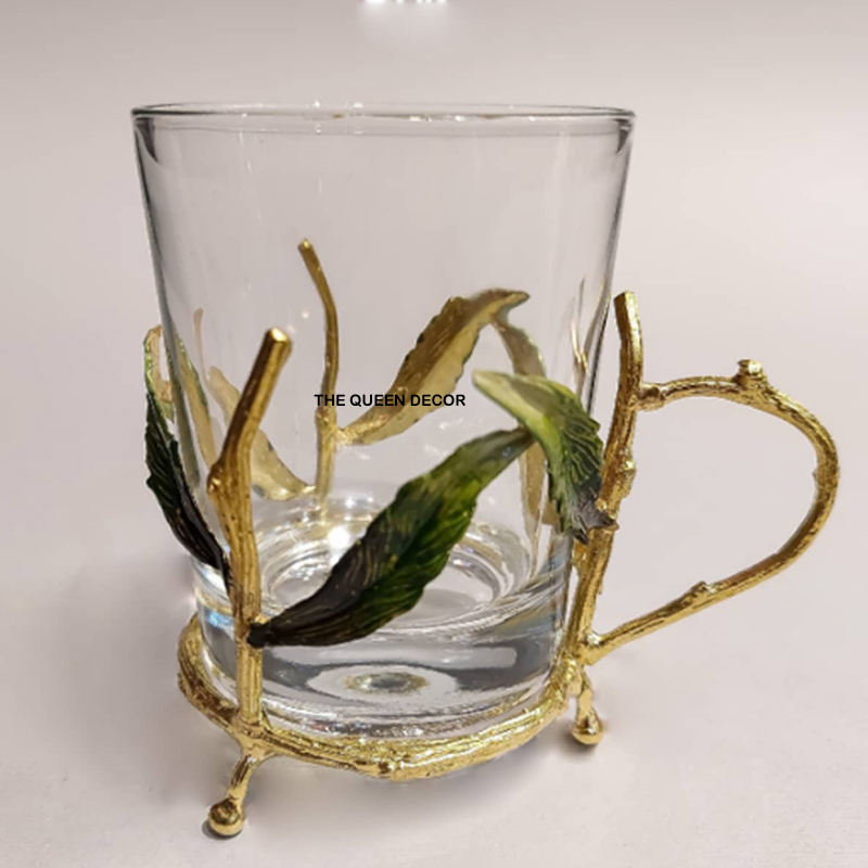แจกันโลหะอะลูมิเนียมงานฝีมือสร้างสรรค์ ดีไซน์ใบไม้ ประดับกระจก ชุบทอง ทันสมัย ทำด้วยมือ