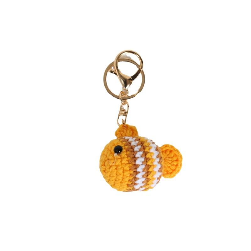 จี้ปลาการ์ตูนถักโครเชต์ทำมือ งานฝีมือจากไหมพรมถัก ตกแต่งแขวนผนัง ปลาหลากสี ใช้เป็นพวงกุญแจ