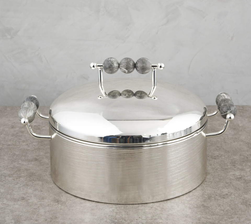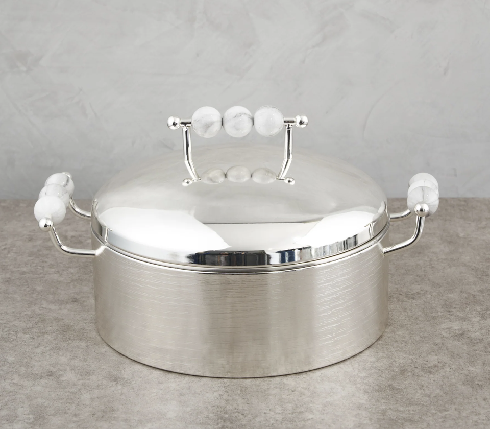 Creative Handmade Eco-Friendly Modern Food Warmer Casserole Dish Stainless Steel Silver Mirror Polish Little Balls Handle Gas