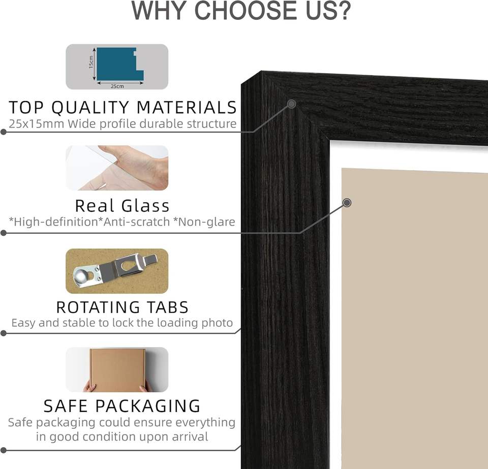 กรอบรูปไม้สีดำขาวพิมพ์ลาย UV งานแฮนด์เมดสุดสร้างสรรค์ ดีไซน์หรูหราทันสมัย