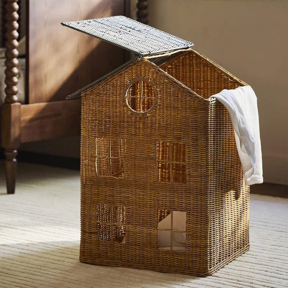 ตะกร้าจัดเก็บของเล่นตกแต่งบ้านตุ๊กตาหวายสานมือ งานฝีมือธรรมชาติ สำหรับห้องเด็ก