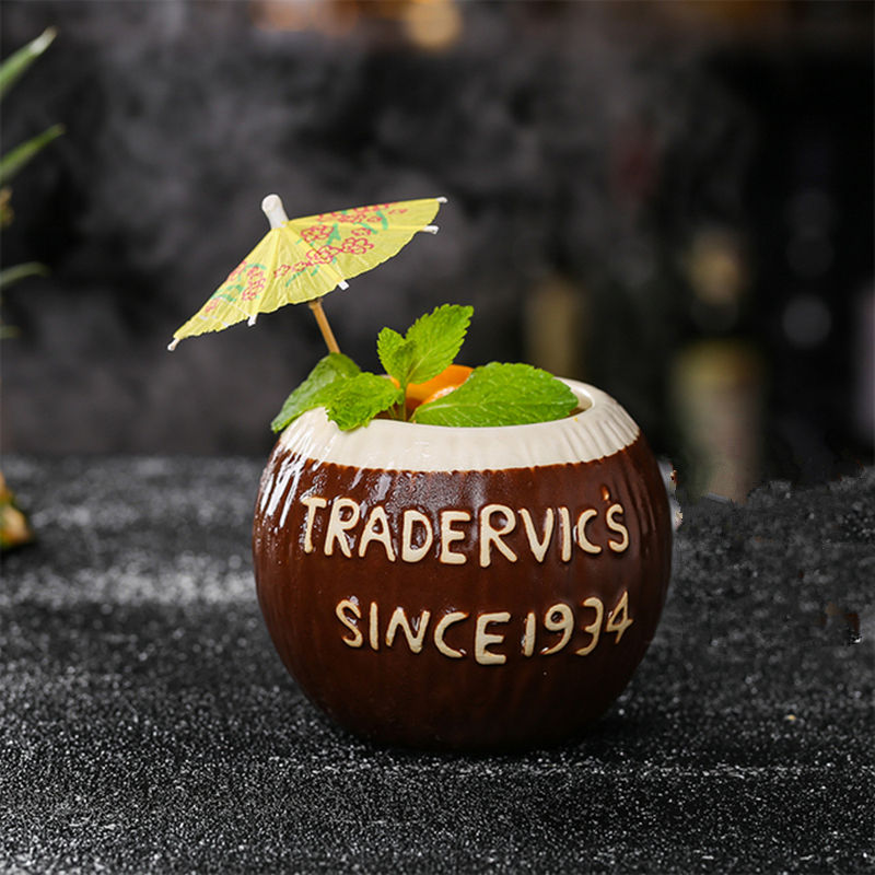 แก้วค็อกเทลรูปหัวกะโหลกเทพเจ้าฮาวาย แก้วทิกิสำหรับเครื่องดื่มเย็นๆ แก้วไวน์ตลกๆ แก้วสมูทตี้ DIY แก้วน้ำทำจากเซรามิกเนื้อละเอียด