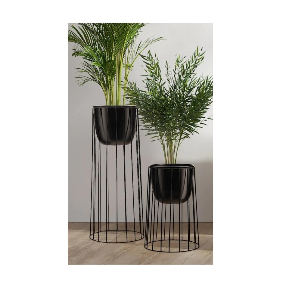 ตกแต่งบ้านสร้างสรรค์ห้องนั่งเล่นตกแต่งชาวไร่ชุด 2 ชุดชาวไร่โลหะสีดําพร้อมขาตั้งสําหรับตกแต่งสวนชาวไร่