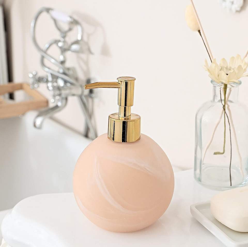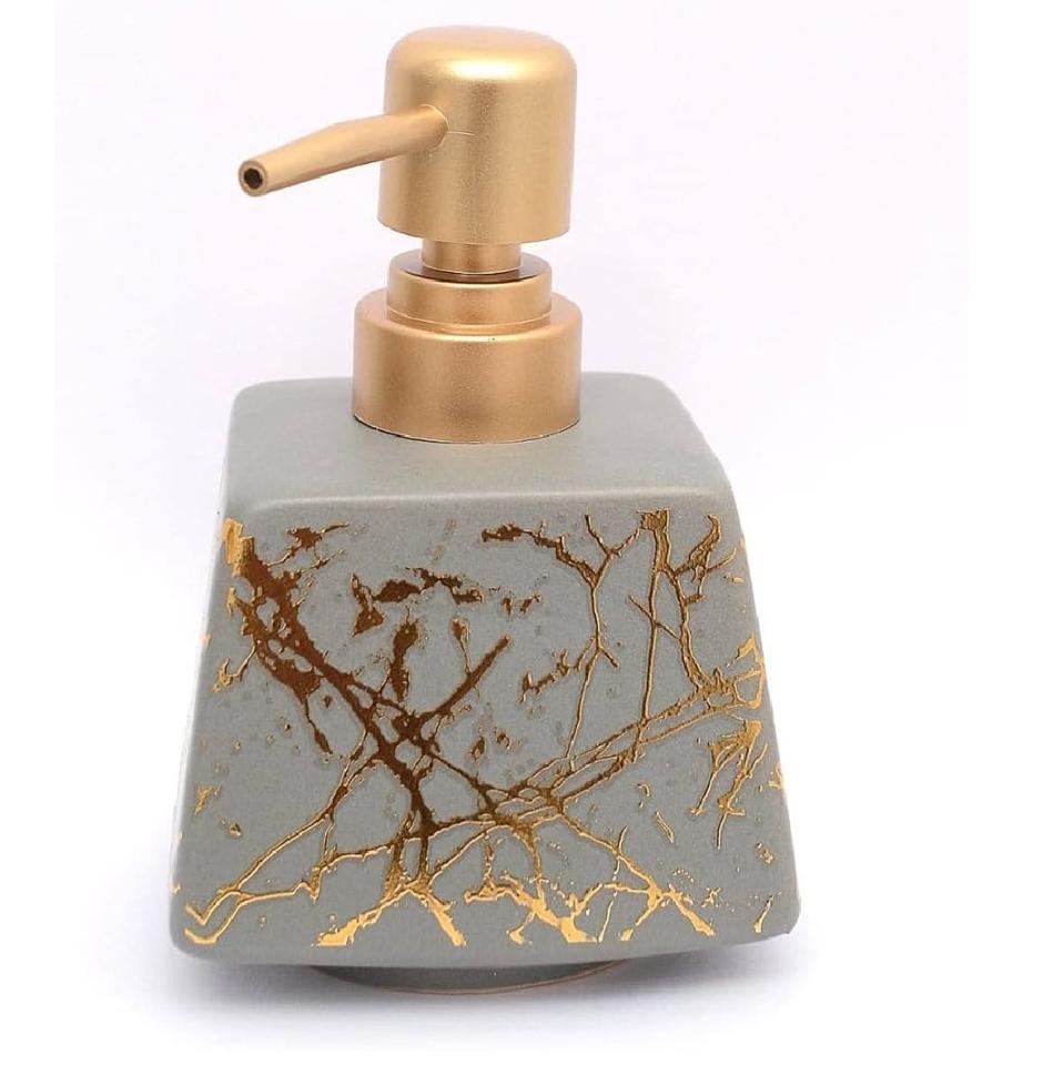 Creative Home ธรรมชาติแชมเปญหินอ่อนเครื่องจ่ายโลชั่นสบู่เหลวพร้อมปั๊มสแตนเลสสําหรับห้องน้ําเคาน์เตอร์-top Organizer