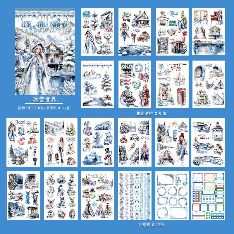 หนังสือสติกเกอร์รูปทิวทัศน์โลกน้ำแข็งที่สร้างสรรค์พร้อมวัสดุกระดาษกันน้ำสำหรับตัดและเขียนตกแต่ง